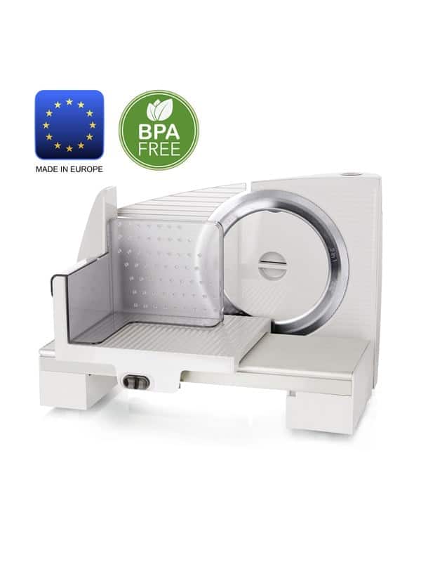 Med denne slanke og fremragende skiver fra Emerio, lavet i Europa, får du perfekt jævne skiver, uanset hvilken tykkelse du ønsker. Placer det, du vil skære, på skiveren, og vælg en skivetykkelse mellem 0-15 mm. Uanset om du skærer kød, brød, grøntsager el