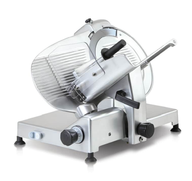 Topmodel fra Italienske Swedlinghaus. Skråtstillet og derfor ideel til pålæg og anbefales til professionel brug i f.eks. slagterforretninger og delikatesser. Fremstillet af anodiseret støbt aluminiumslegeringskonstruktion.Med rem/drevet transmission, moto